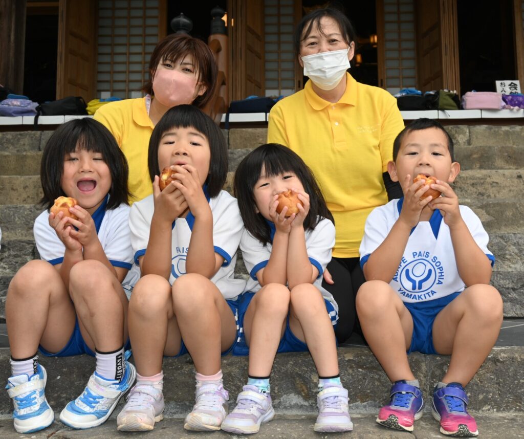 年長さんがオレンジ公園から歩いて徳成寺へ向かいました。